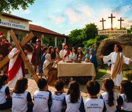 No dia 10, o Colégio Santa Doroteia viverá um momento especial de fé e reflexão com a celebração da Páscoa. Nossos alunos irão vivenciar, de forma simbólica, os principais acontecimentos dessa data tão significativa, relembrando a mensagem de amor, esperança e renovação que a Páscoa nos transmite.